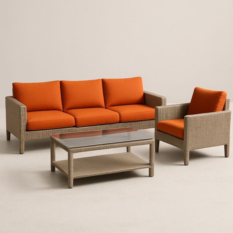 Set patio completo con divani, poltrone e tavolo, ideale per momenti di relax in giardino o sul balcone. I cuscini inclusi garantiscono un comfort immediato.